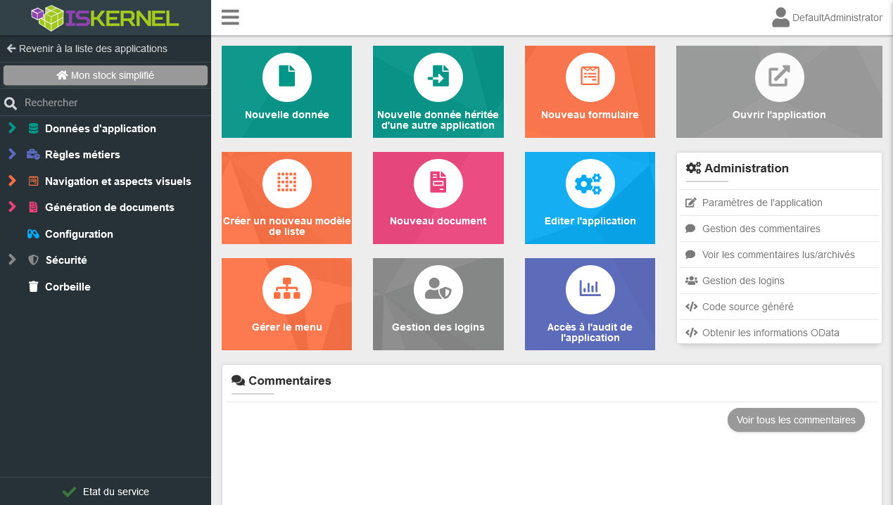 - regroupe le paramétrage des données de l'application (entités, champs, actions, ...).